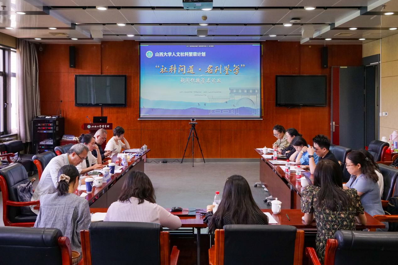 5月17日,由山西大学社会科学处、学术期刊社主办,图书馆协办,新闻学院承办的“社科问道·名刊鉴学”新闻传播学术论坛成功举办。《新闻与传播研究》执行主编朱鸿军、《国际新闻界》副主编王斌、《新闻大学》副主编姜华、《现代传播》副主编潘可武、《新闻与写作》主编李蕾、《新闻界》总编辑段吉平、《编辑之友》执行主编李晶、《全球传媒学刊》主编陈昌凤等国内新闻传播学领域的知名期刊编辑和专家参加论坛,围绕AI时代新闻传播学者的研究使命、传媒学术议题的因素、知识体系的构建与创新等展开探讨交流。社会科学处处长赵云波出席论坛并致辞,开幕式由新闻学院院长庞慧敏主持。