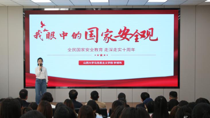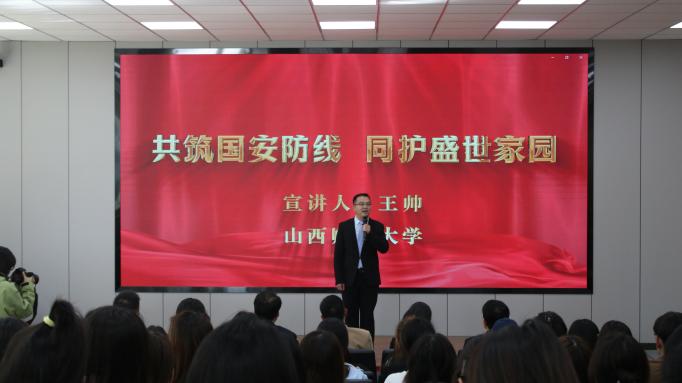 活动特邀三位在全省高校总体国家安全观宣讲大赛中获得优异成绩的老师深入解读总体国家安全观的丰富内涵。山西晋中理工学院的于乐老师以《共筑维护网络安全防火墙》为题,结合斯诺登事件、国内网络泄密案例,阐述网络安全对国家安全的重要性,并鼓励大学生运用专业所长筑牢数字防线。山西财经大学的王帅老师,从阎又文等维护国家安全的英雄出发,强调维护国家安全人人有责,既要着眼“大事”,又要做好小事、身边事,让每个山西人都成为国家安全的守护者,为实现中华民族伟大复兴的中国梦贡献山西人的智慧和力量。山西大学的谢飞老师在《守护星河安宁 共筑国家安全新边疆》中分析了当前太空安全的现状和挑战,阐述我国“理念引领、科技赋能、国际合作”的太空安全路径。他引用荀子“制天命而用之”的古语,指出要想守护头顶星河,既要铸就“可上九天揽月”的科技重器,更应构建“因祸福避趋之”的安全自觉。