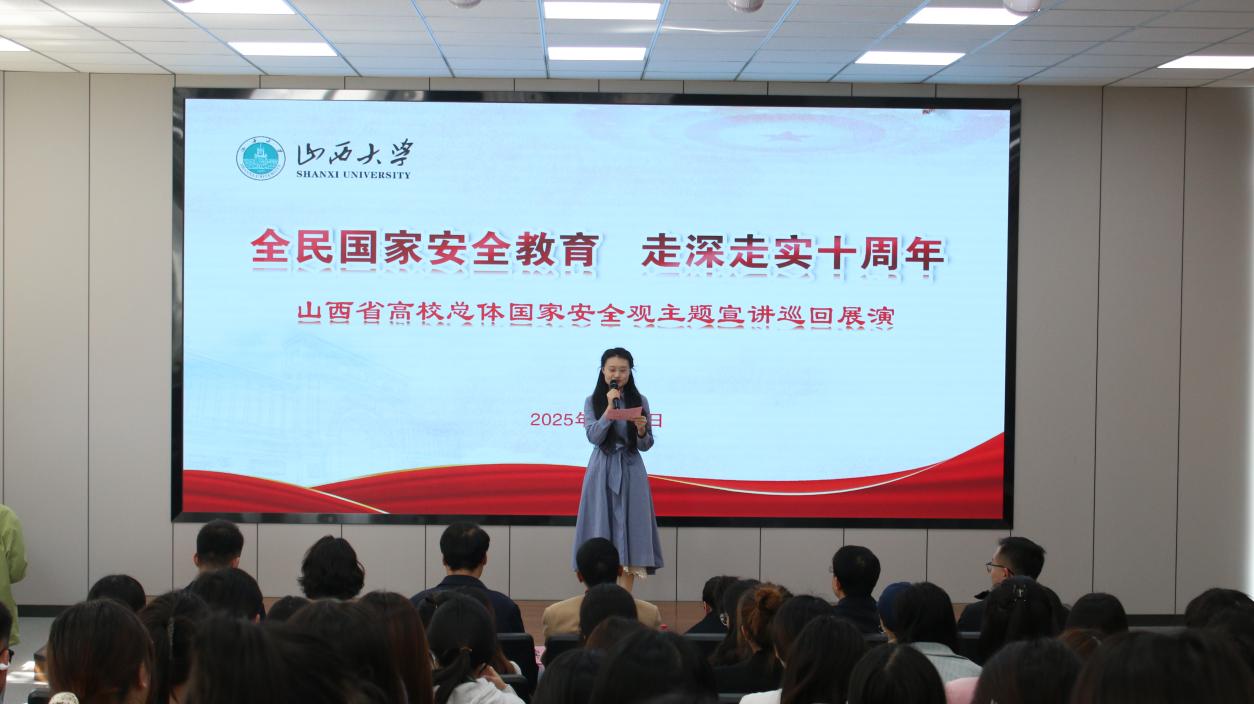 活动特邀三位在全省高校总体国家安全观宣讲大赛中获得优异成绩的老师深入解读总体国家安全观的丰富内涵。山西晋中理工学院的于乐老师以《共筑维护网络安全防火墙》为题,结合斯诺登事件、国内网络泄密案例,阐述网络安全对国家安全的重要性,并鼓励大学生运用专业所长筑牢数字防线。山西财经大学的王帅老师,从阎又文等维护国家安全的英雄出发,强调维护国家安全人人有责,既要着眼“大事”,又要做好小事、身边事,让每个山西人都成为国家安全的守护者,为实现中华民族伟大复兴的中国梦贡献山西人的智慧和力量。山西大学的谢飞老师在《守护星河安宁 共筑国家安全新边疆》中分析了当前太空安全的现状和挑战,阐述我国“理念引领、科技赋能、国际合作”的太空安全路径。他引用荀子“制天命而用之”的古语,指出要想守护头顶星河,既要铸就“可上九天揽月”的科技重器,更应构建“因祸福避趋之”的安全自觉。